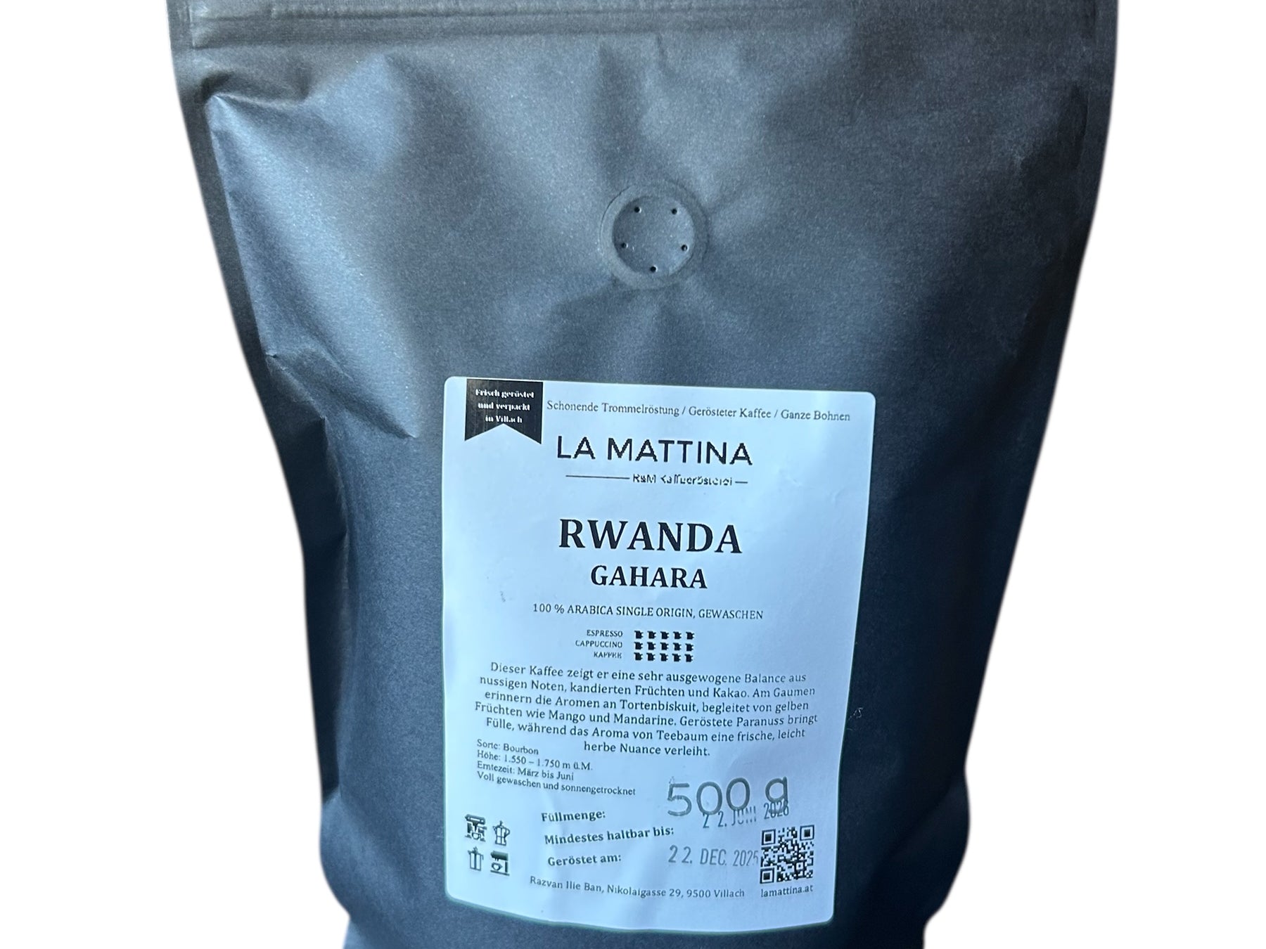 Dieser Kaffee zeigt eine sehr ausgewogene Balance aus nussigen Noten, kandierten Früchten und Kakao. Am Gaumen erinnern die Aromen an Tortenbiskuit, begleitet von gelben Früchten wie Mango und Mandarine. Geröstete Paranuss bringt Fülle, während das Aroma von Teebaum eine frische, leicht herbe Nuance verleiht. Ideal für die Zubereitung mit Siebträger, Filter, Mokka und French Press.